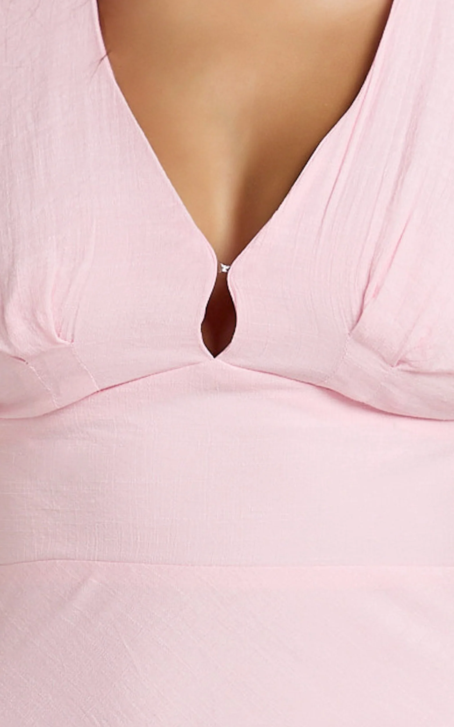 Desiree Midi Dress - V Neck Flutter Short Sleeve Slip Dress in Pink