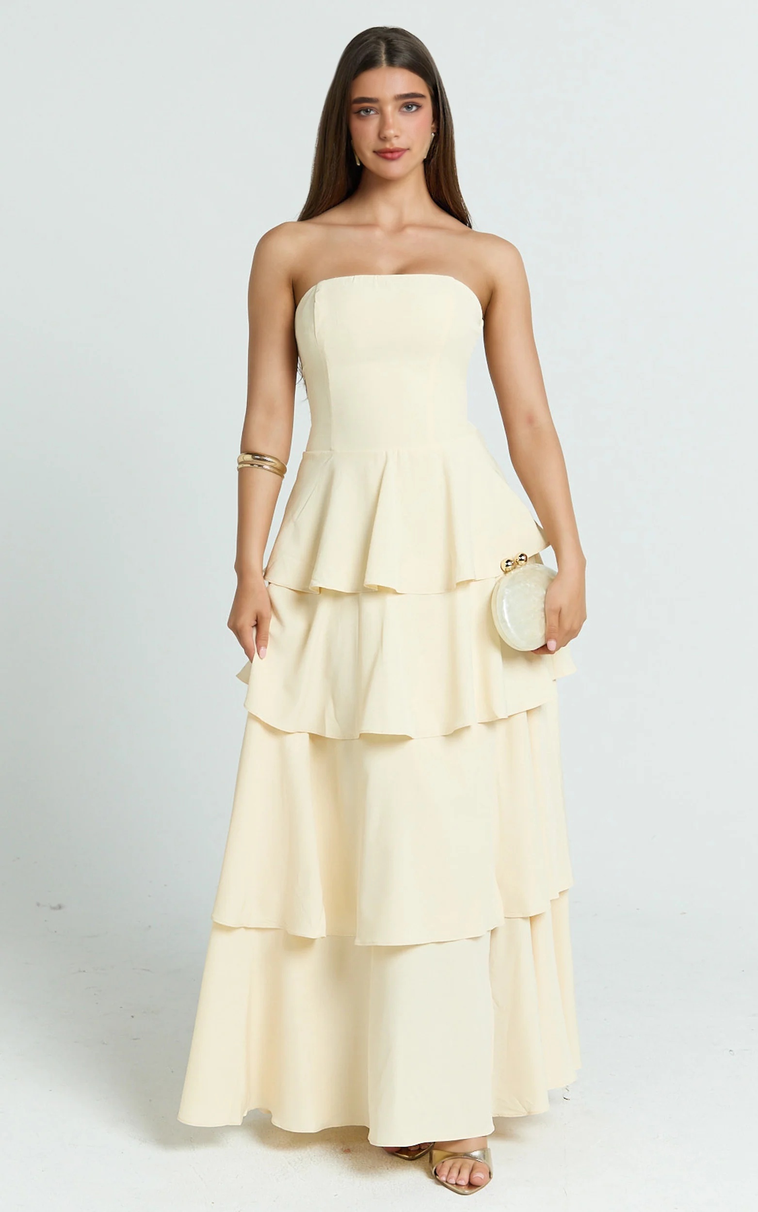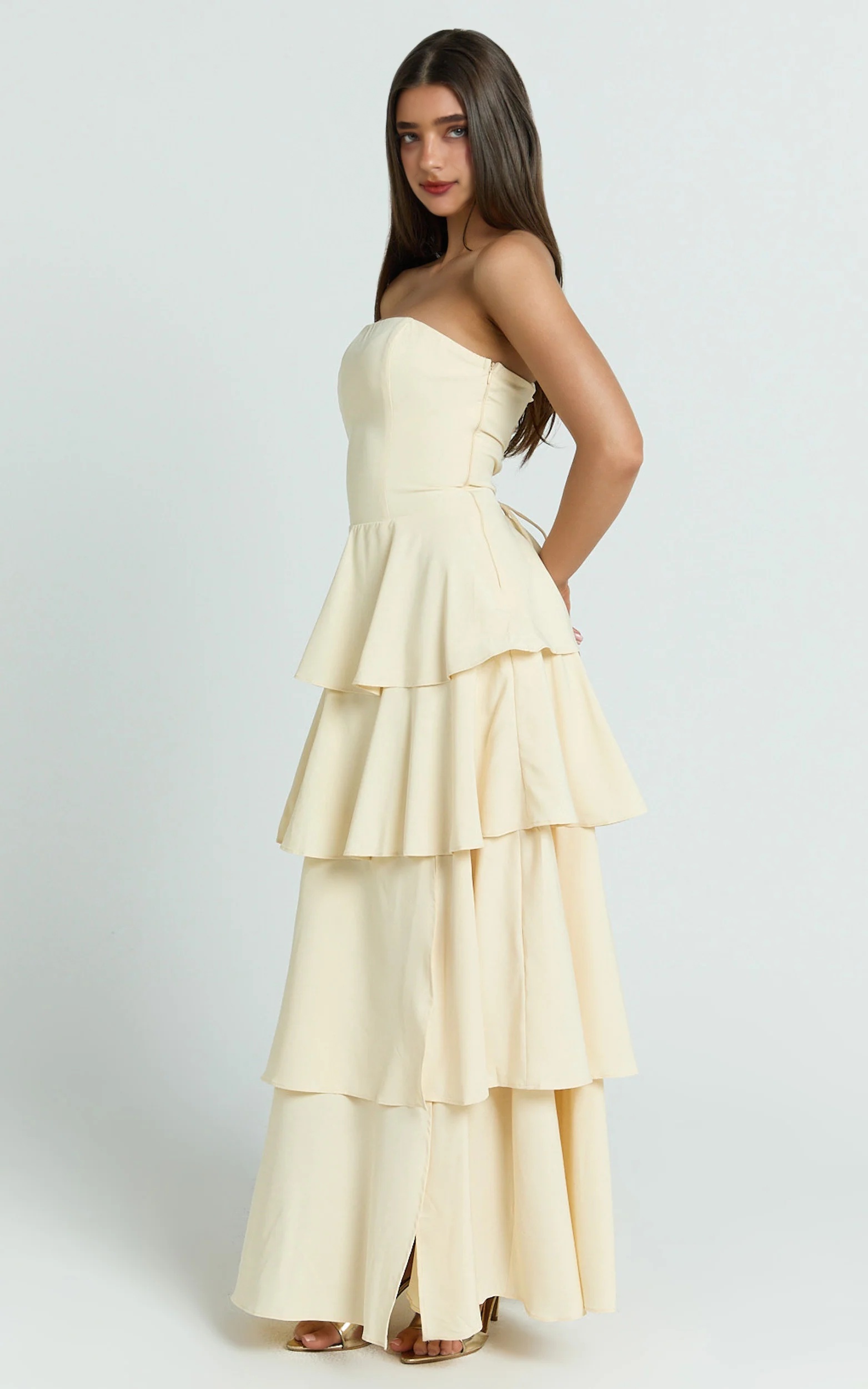 Suzy Midi Dress - Tiered Ruffle Lace Up Dress in Lemon