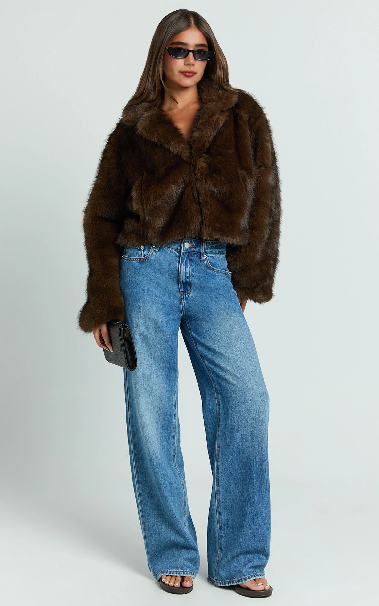 • Oversized Crop Faux Fur Coat in Brown