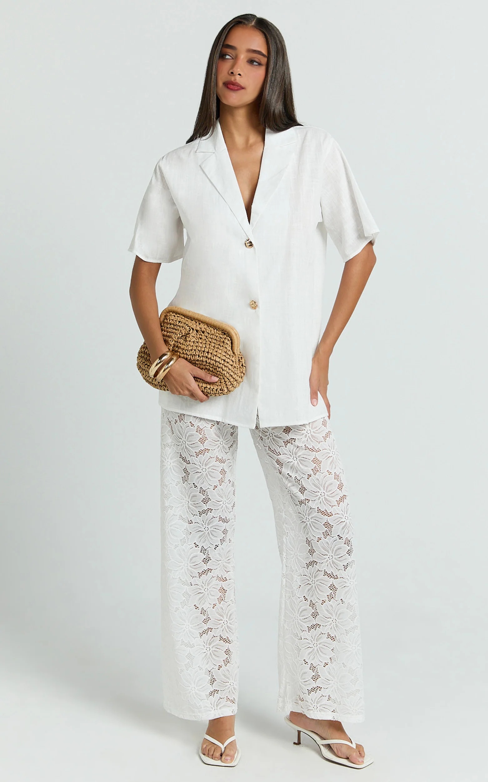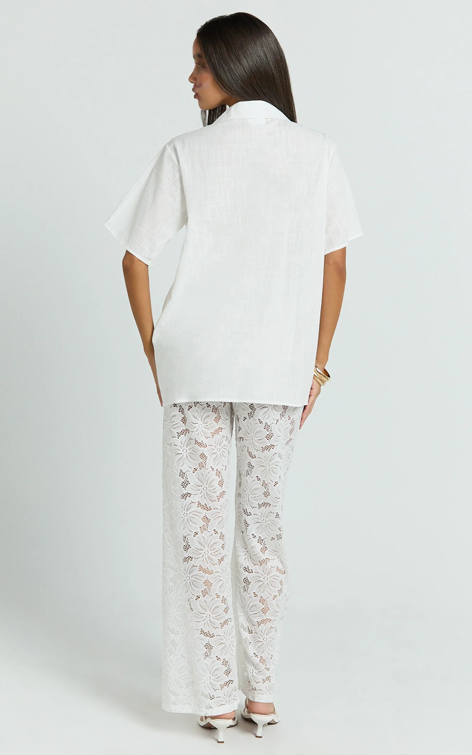 White Two-Piece Set: Relaxed Shirt and Lace Pants