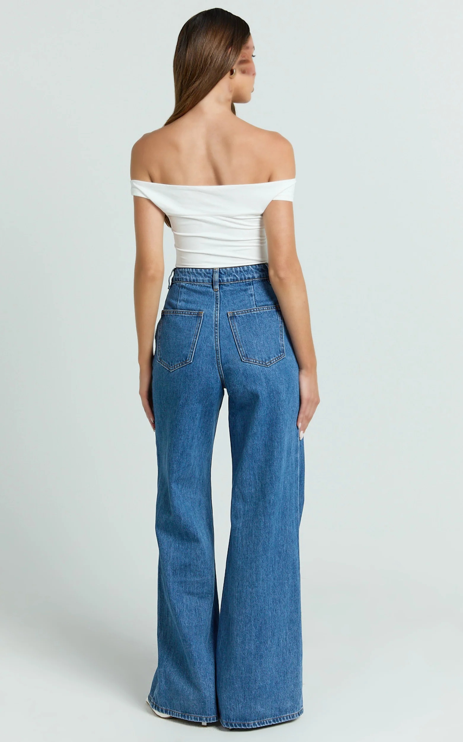 High Waist Wide Leg Flare Dark Blue Recycled Denim Jeans