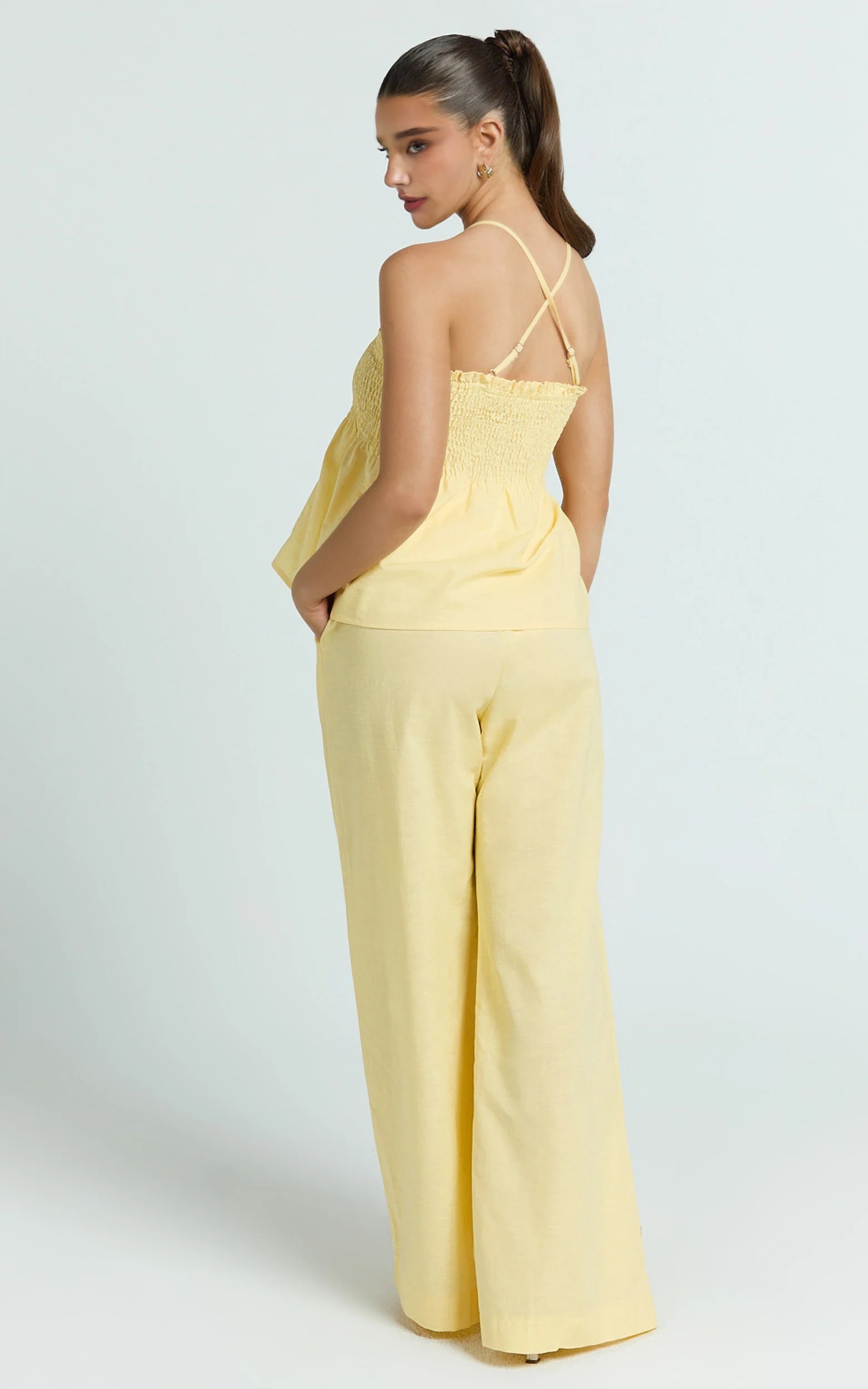 Alma Two Piece Set - Cotton Cami Pant Set in Lemon