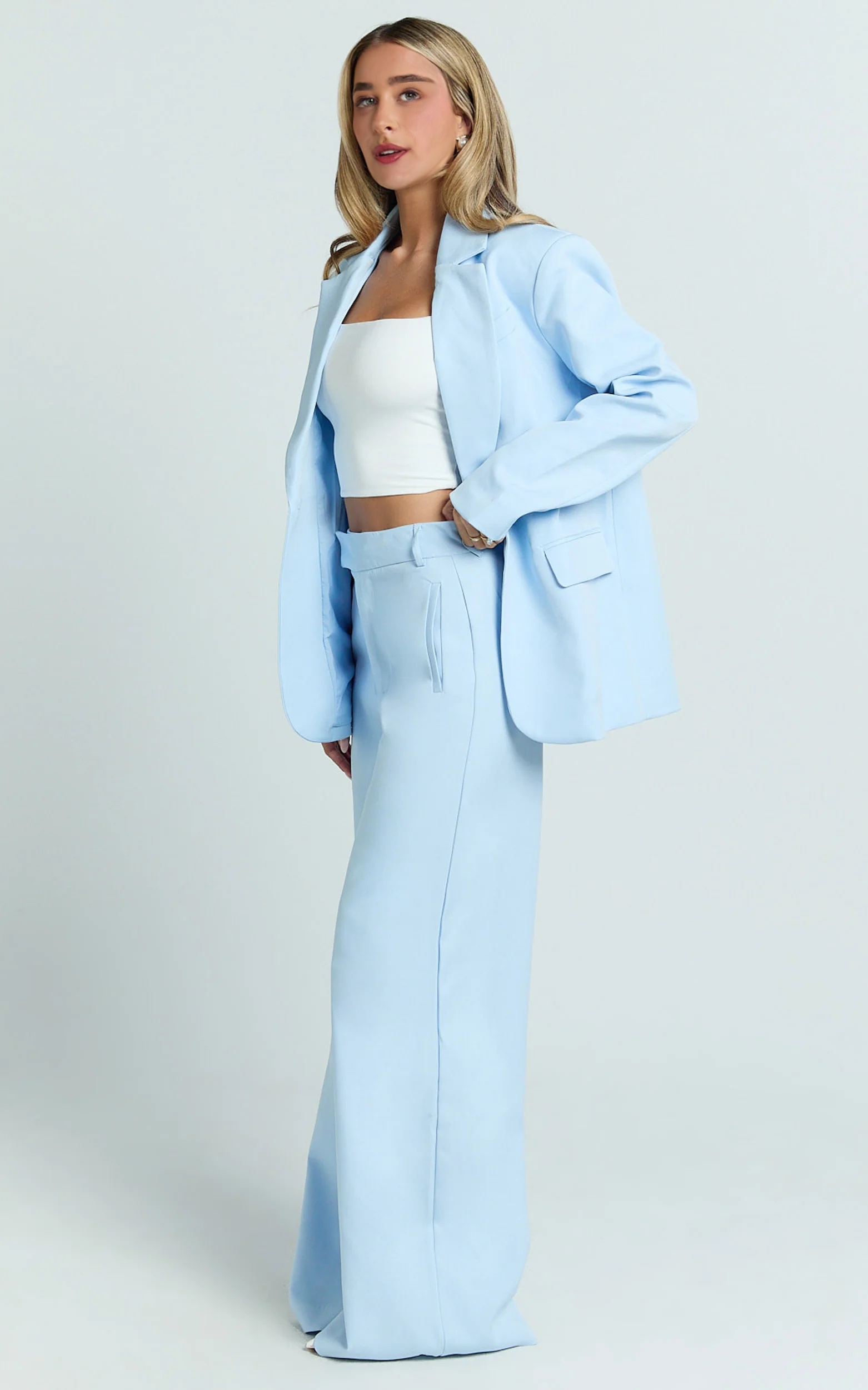 Selena Pants - High Waisted Wide Leg Tailored Pants in Baby Blue