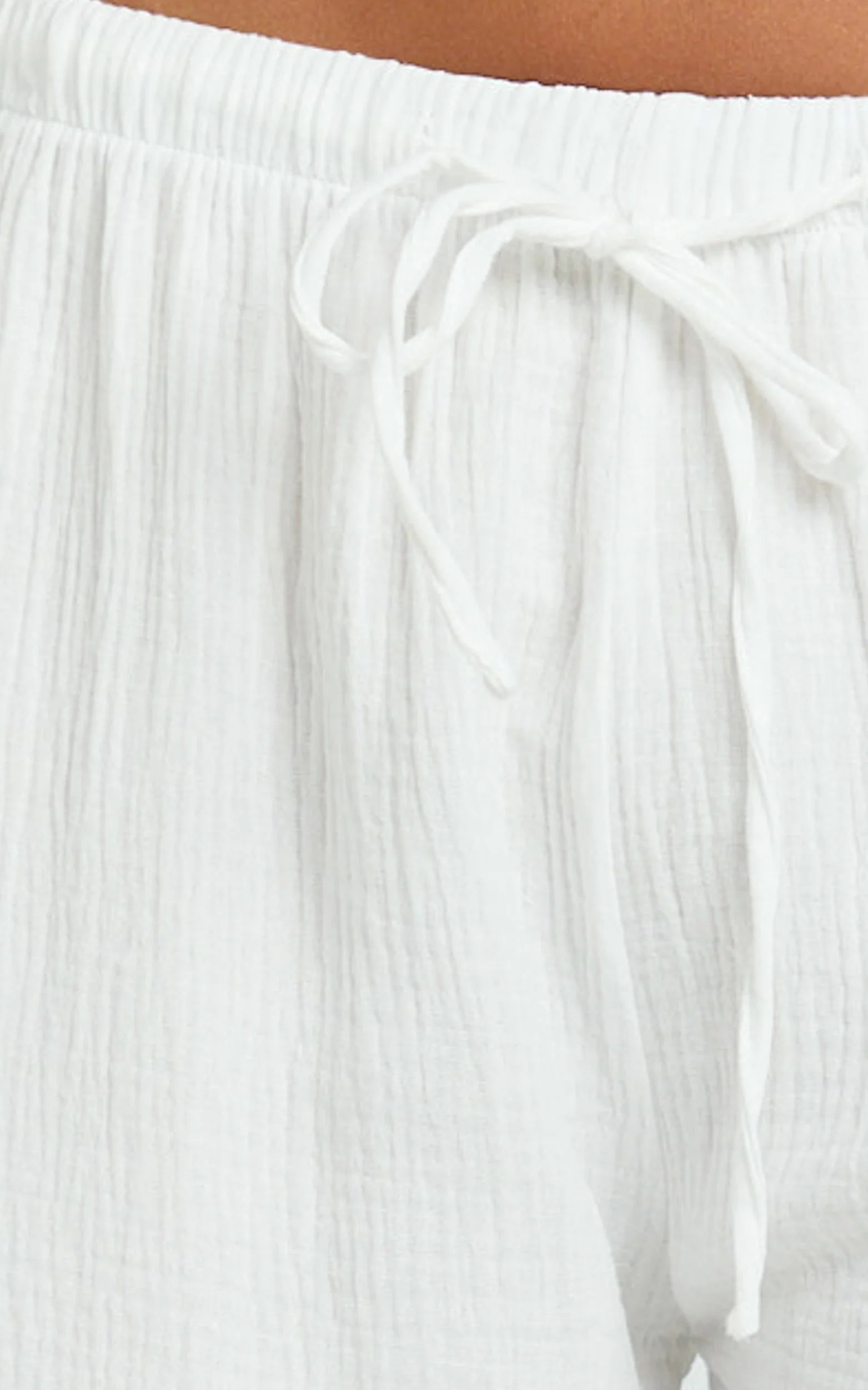 Leonie Pants - Mid Waisted Cheesecloth Relaxed Pants in White